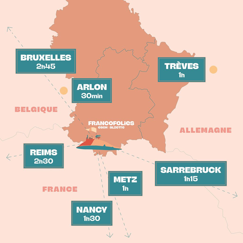 Les Francofolies Esch/Alzette se situent au cœur de l’Europe, au centre de la région des 3 frontières !